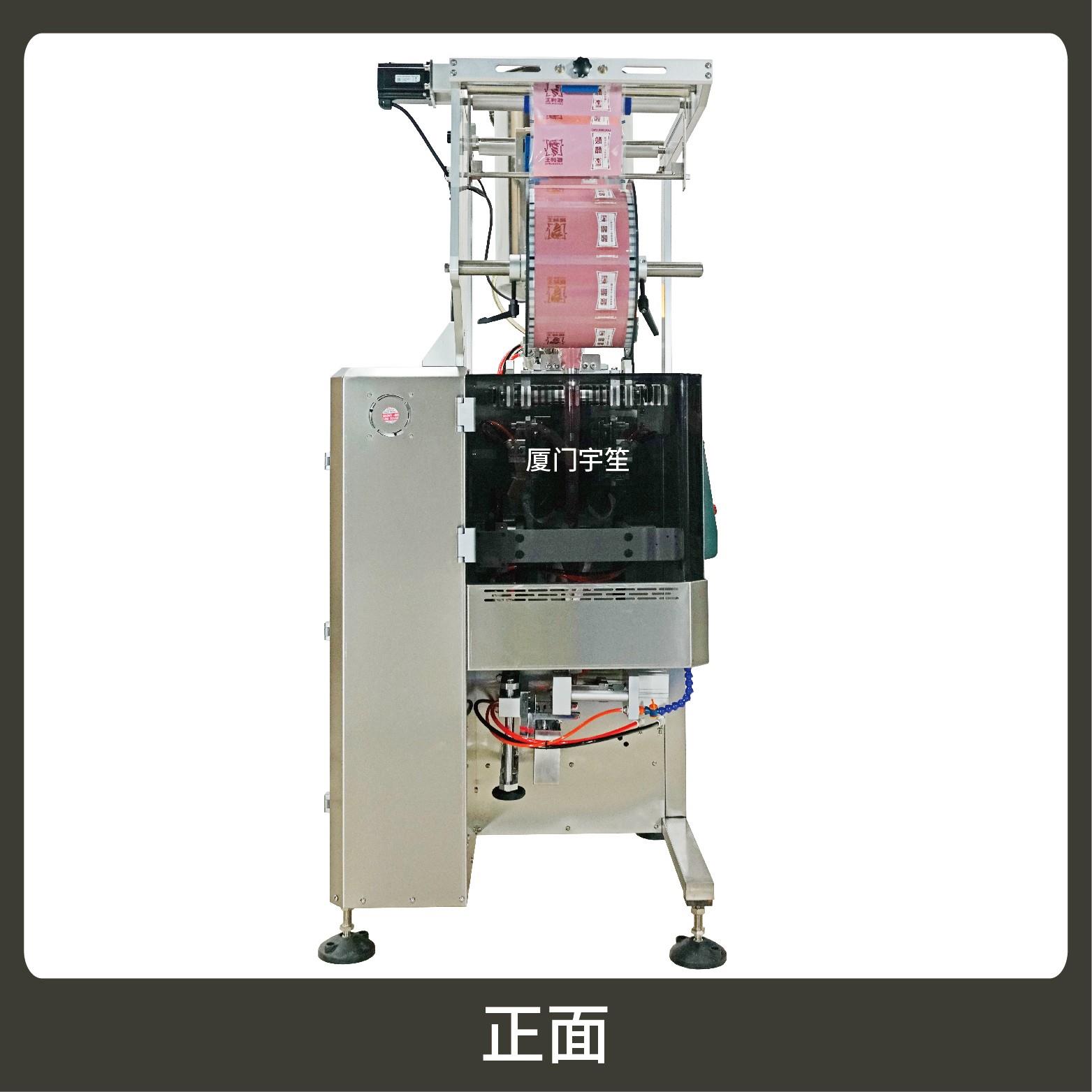 功能:可自動完成下料、制袋、計量、充填、封合、分切、計數,可根據需求配置打碼功能。采用觸摸屏操作PLC控制,驅動步進電機控制袋長,性能穩(wěn)定、調整方便、檢測準確。