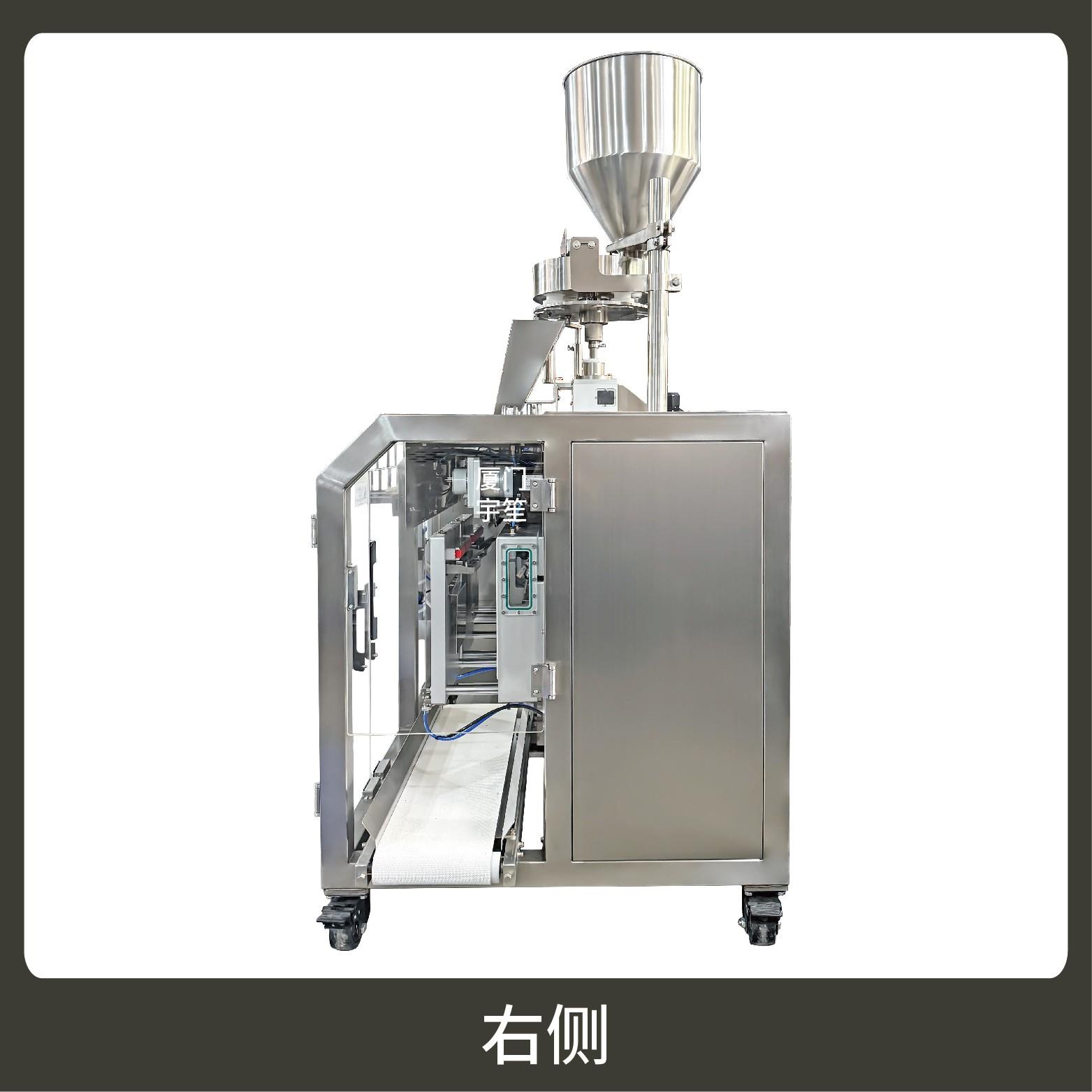 2、包裝流程全自動,可抽真空(真空度可達(dá)到-0.1Mpa)??筛鶕?jù)充填物料的性質(zhì)選配不同的下料結(jié)構(gòu)。